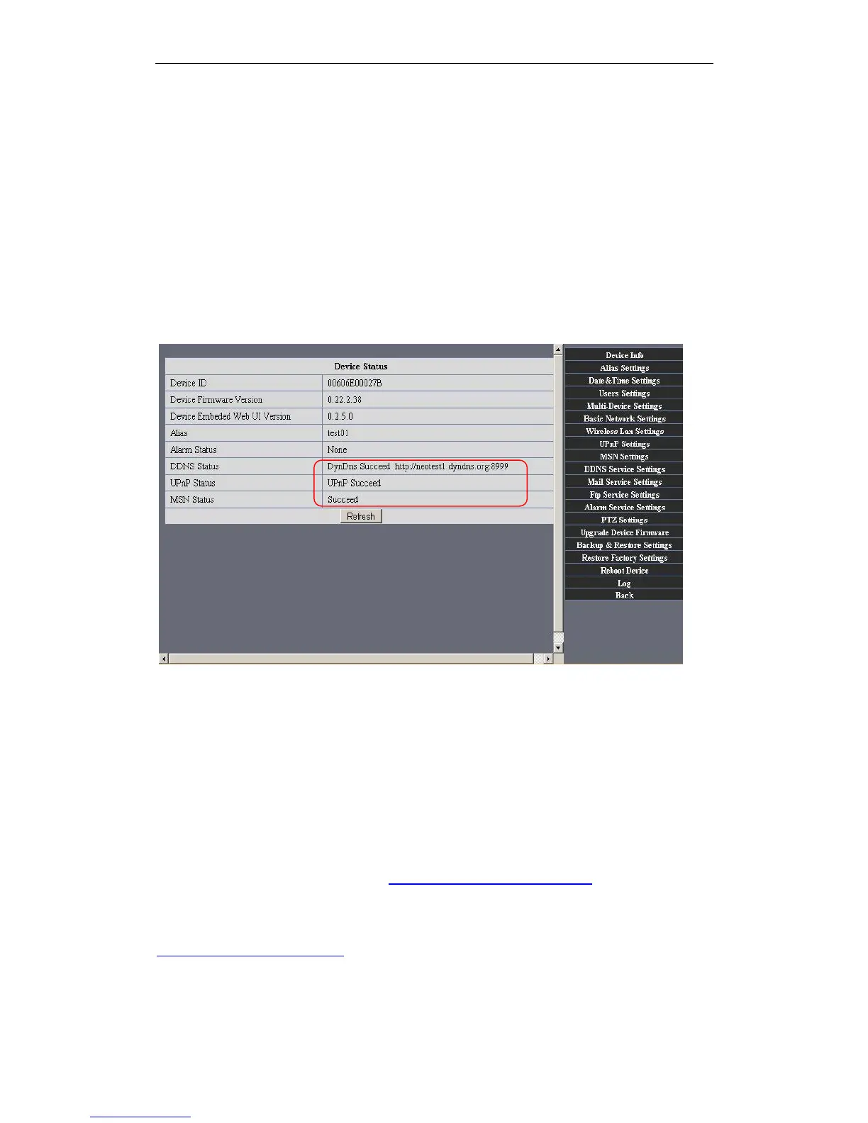 5) Re-login the Camera homepage to check and make sure the DDNS Status and UPnP