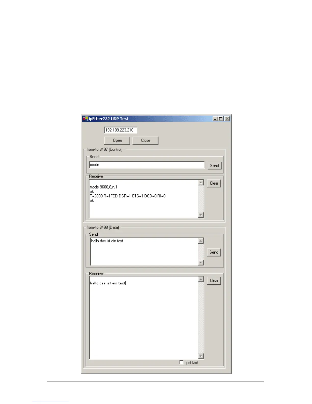 .5 Sample for ipEther232 (Transparent UDP Mode)