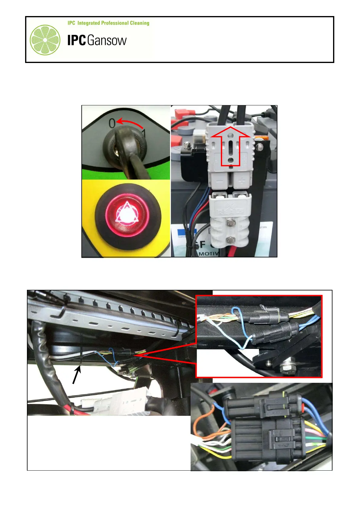 the main machine wiring, located on the left of the machine under the battery container.