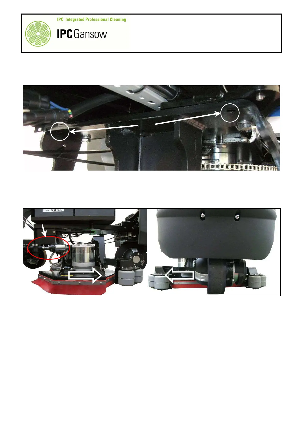 Paying attention to the detergent pump G, remove the head from beneath the machine from the right side.