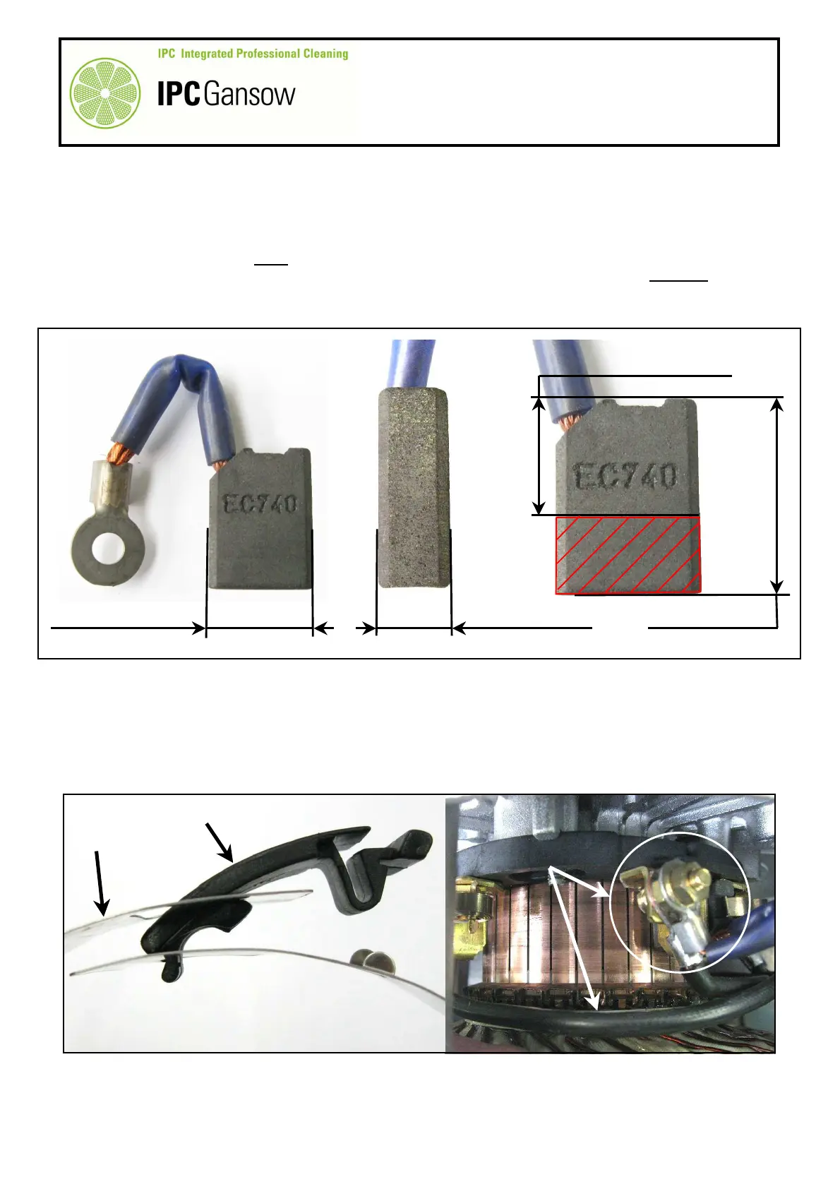 When replacing, compare the new carbon brush with the one being replaced and/or the measurements