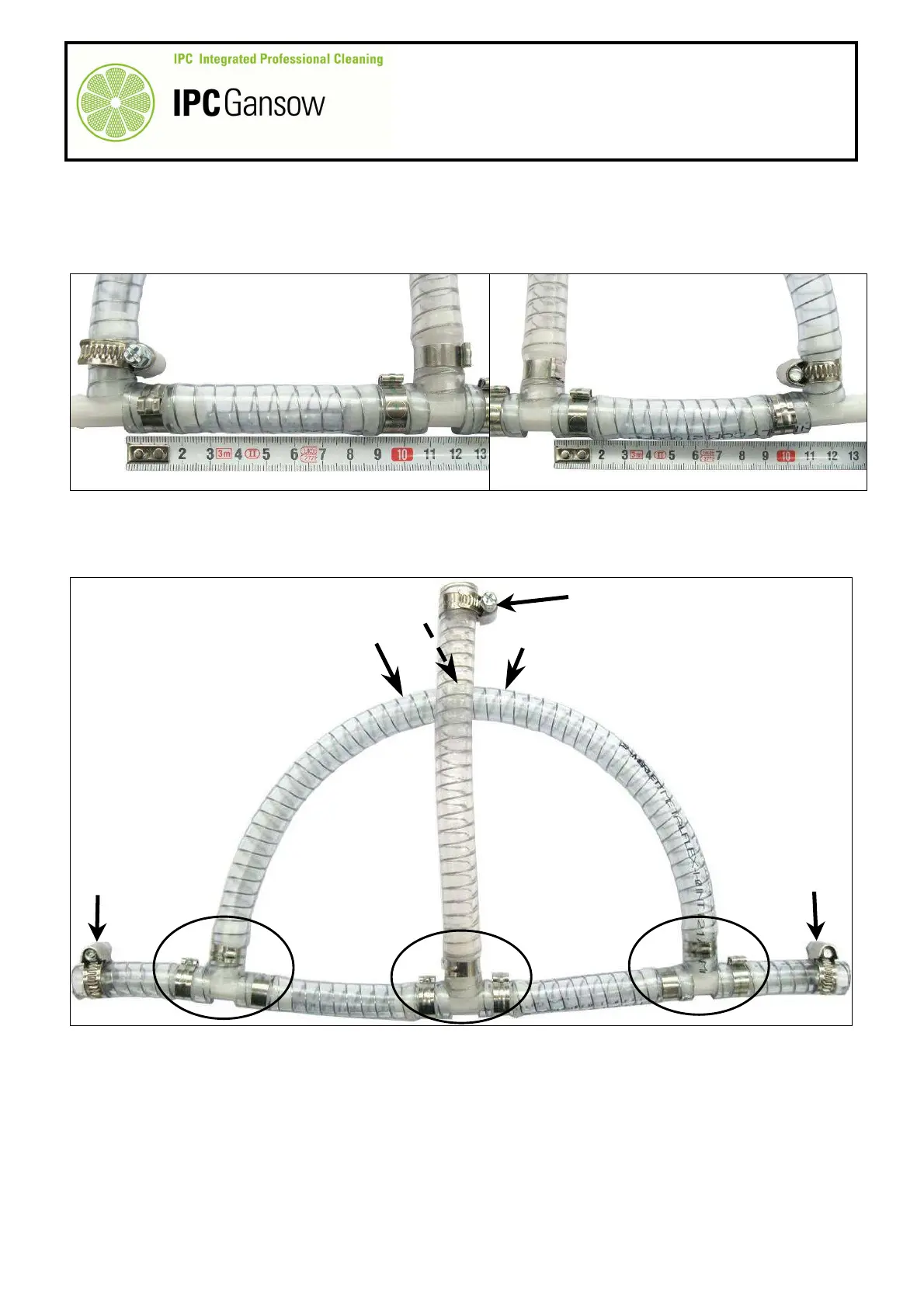 the hoses fastened to the head. Their length will depend on the size of the head (85 - 105).