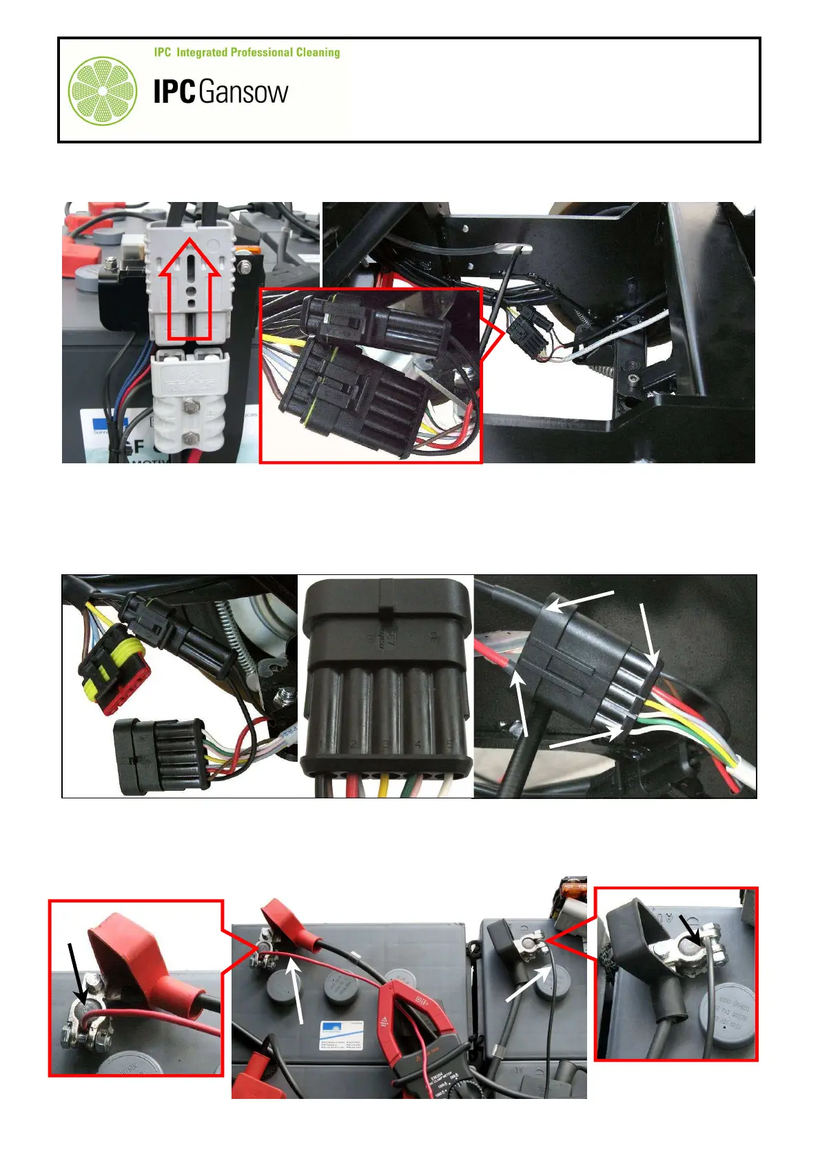 Disconnect the batteries from the machine electronics via the Anderson connector F.