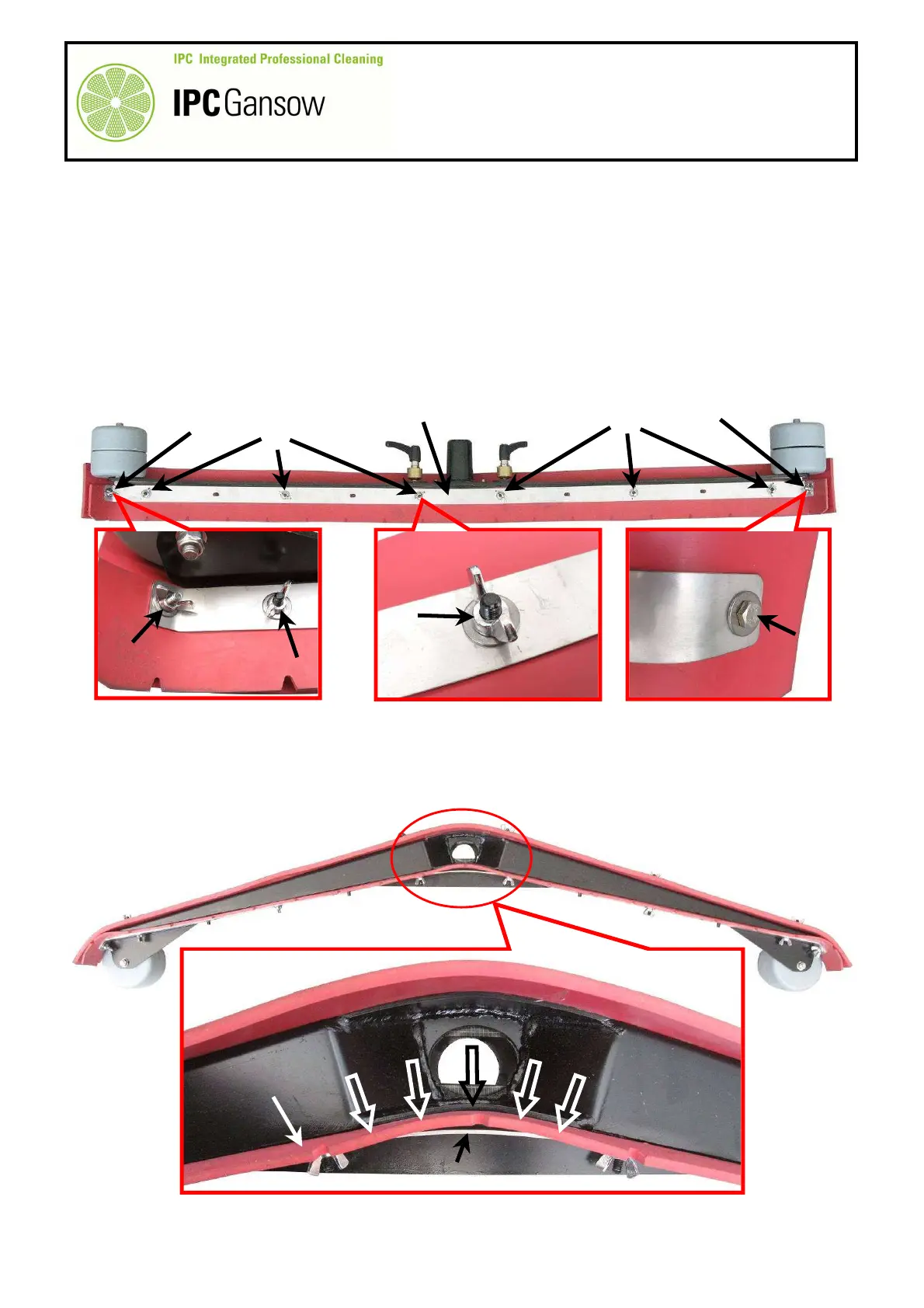 Remove the full width blade retainer H and then the front squeegee blade I.