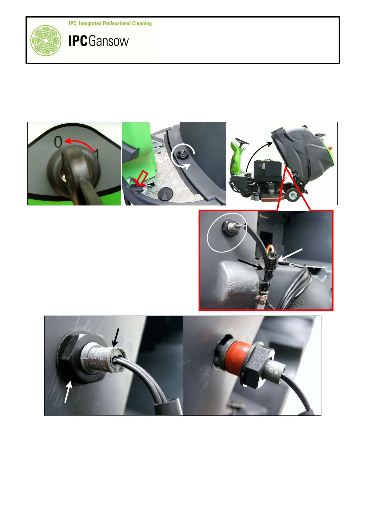 Switch the machine off by turning the ignition key A to "0" and press the pedal B to put the parking brake on.