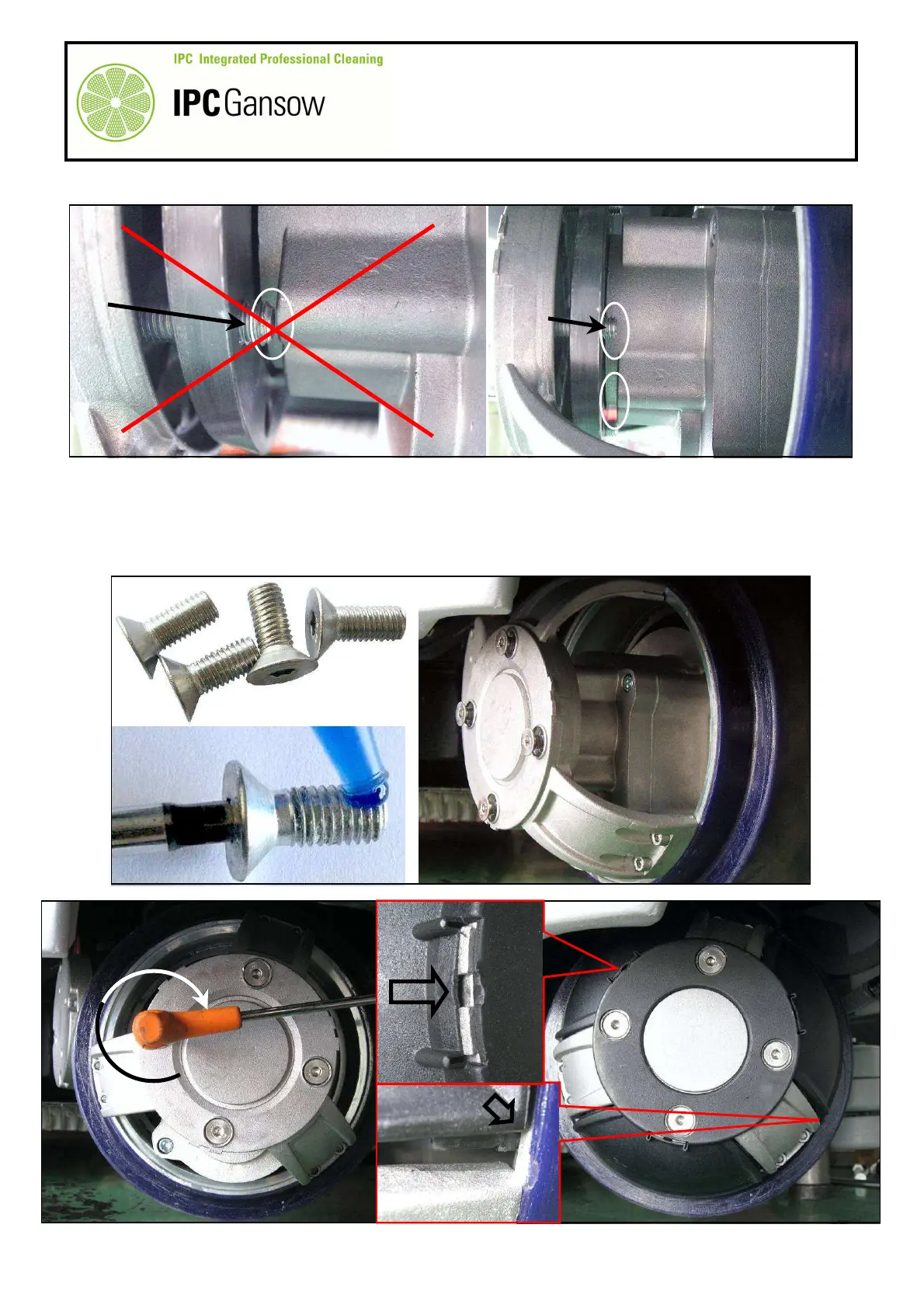 When screwing up the four screws C, pay attention to the position of the drive hub A8 with respect to the