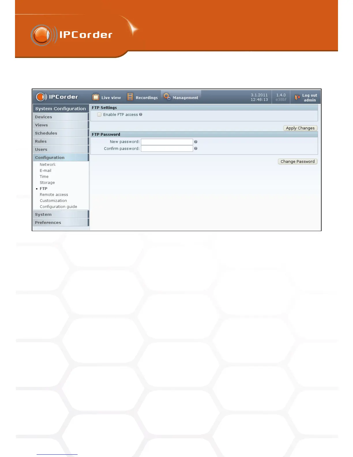 access in the FTP Password section. The password may also be later changed here, if necessary.