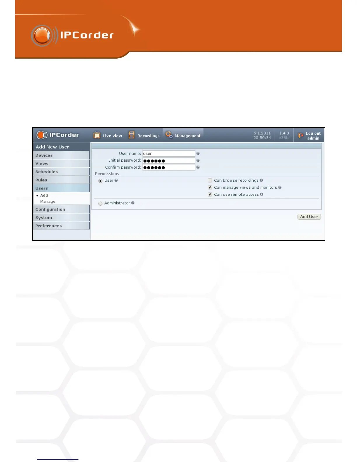 The IPCorder interface offers two types of user accounts – Administrator Account and User Account. The