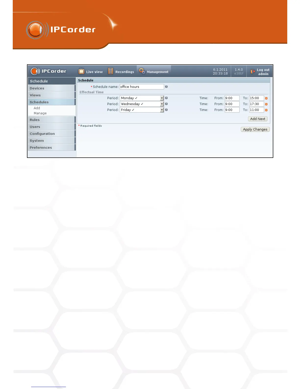 (including changes to the administrator account itself) IPCorder should make.