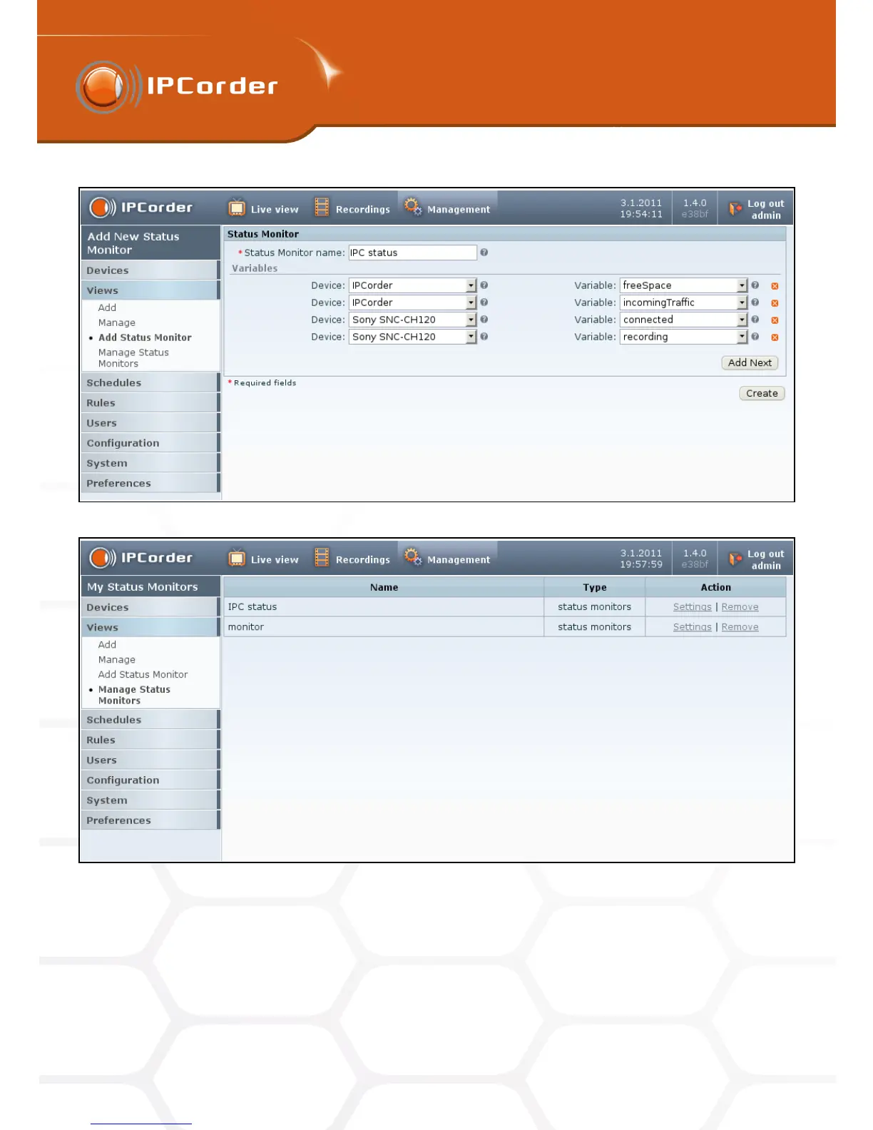 by events, as defined in the respective settings of particular devices, see the chapters 3.3 Recording Modes