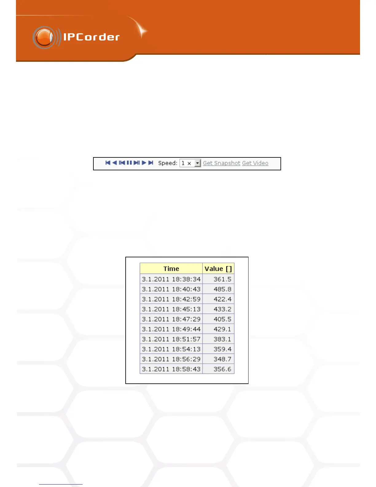 Figure 26: From left: previous video, rewind, previous picture, pause, next picture, play, next video, speed of recording