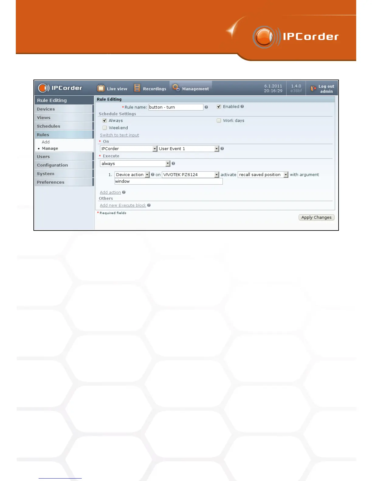 or to Live view mode with active Monitor events selected. The rule that will record the 30 seconds long video