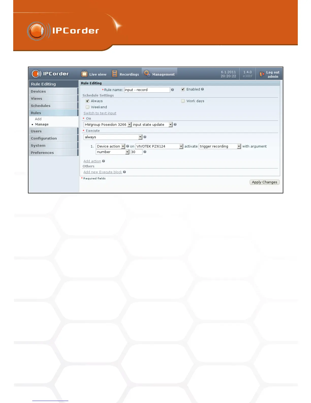 be described in its manual). The rule in Figure 35 sends a cgi command to a camera on motion detect event.