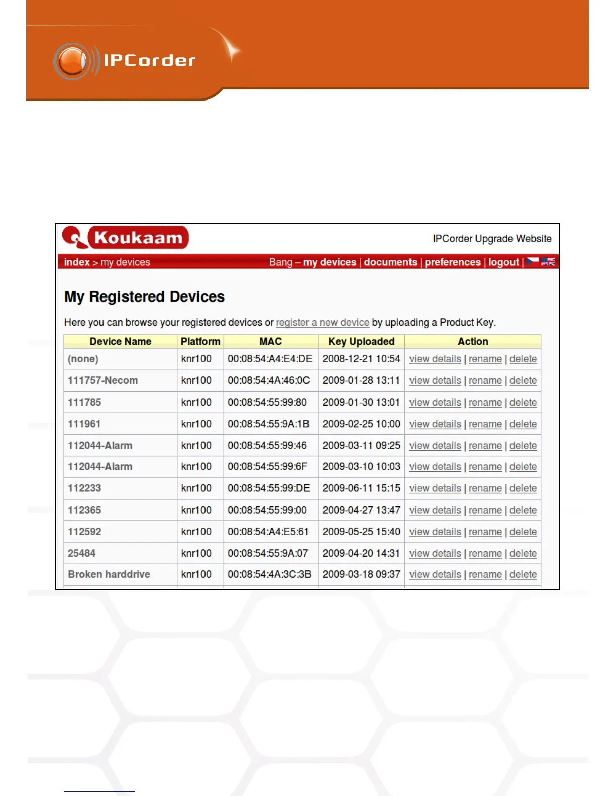 Figure 40: List of registered devices