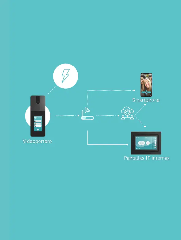 Diagrama con conexión de red inalámbrica y fuente de alimentación