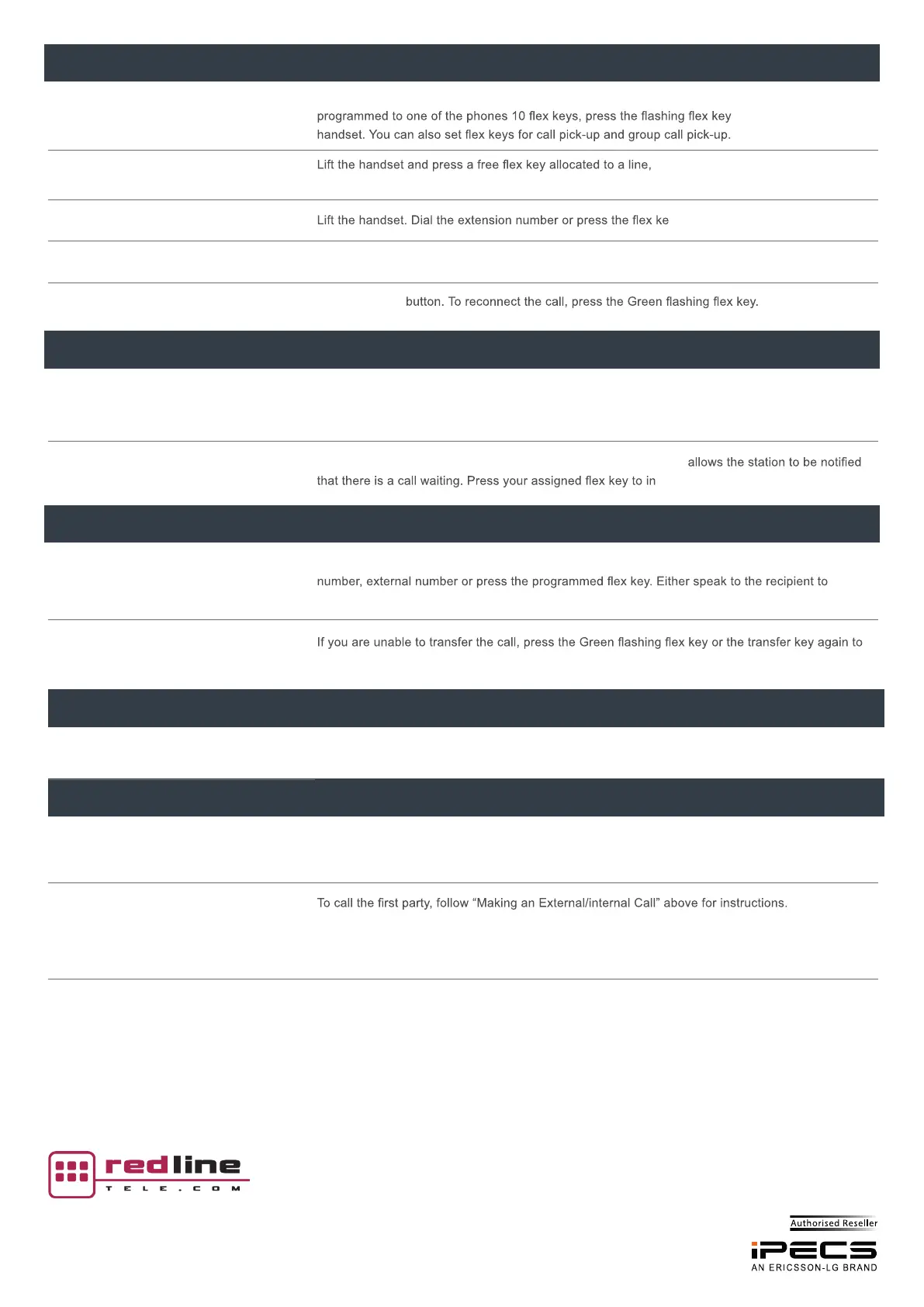 up to return to idle. To retrieve a parked call from any handset, lift the handset and dial the park