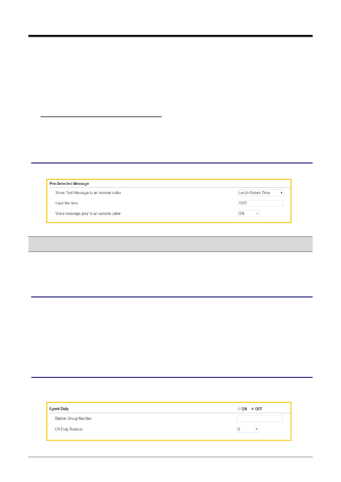 The following window shows Pre-Selected message is set for Internal caller and Outside caller.