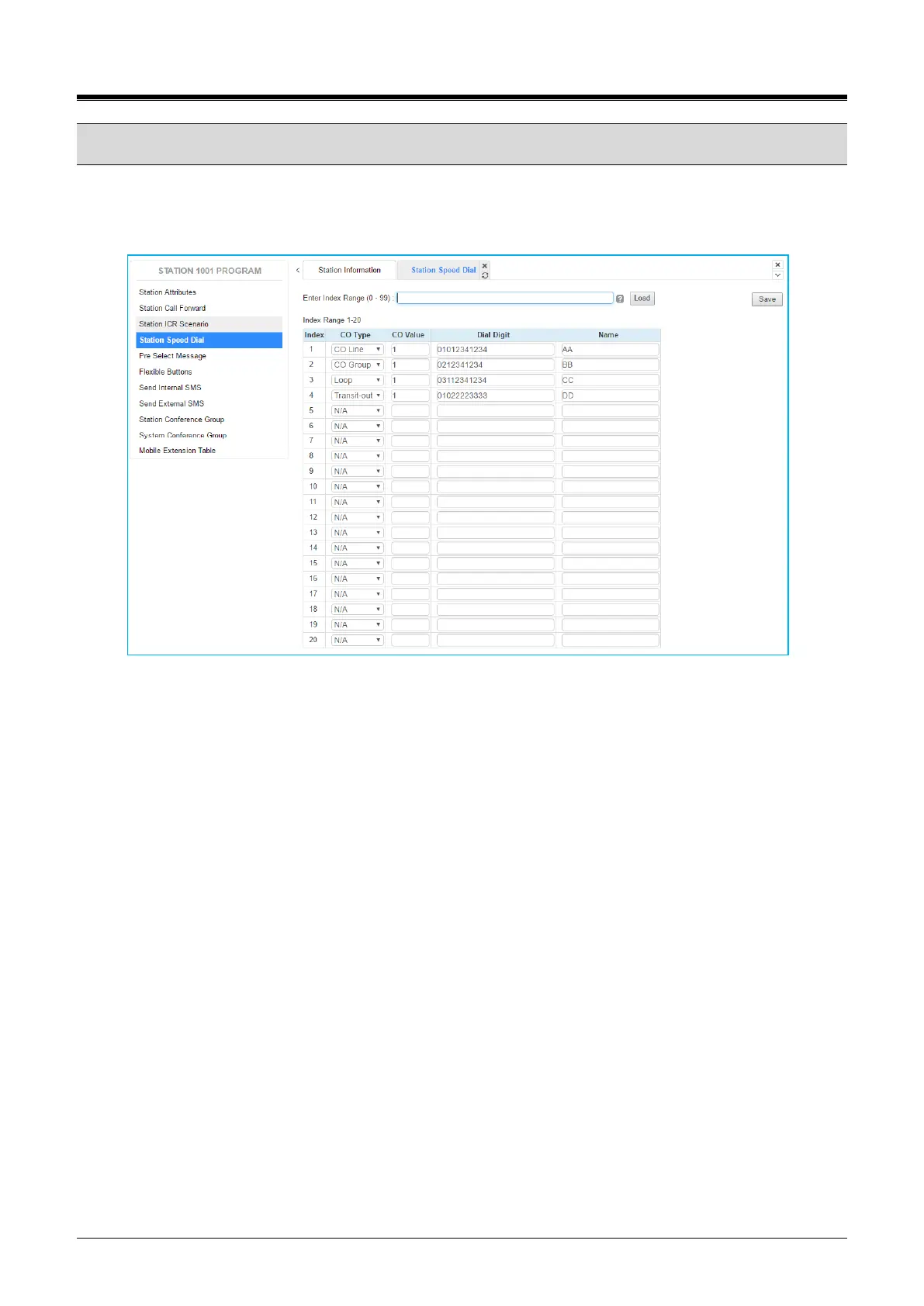 click [Load]. You can get the current information about Station speed dial and you can change or add the