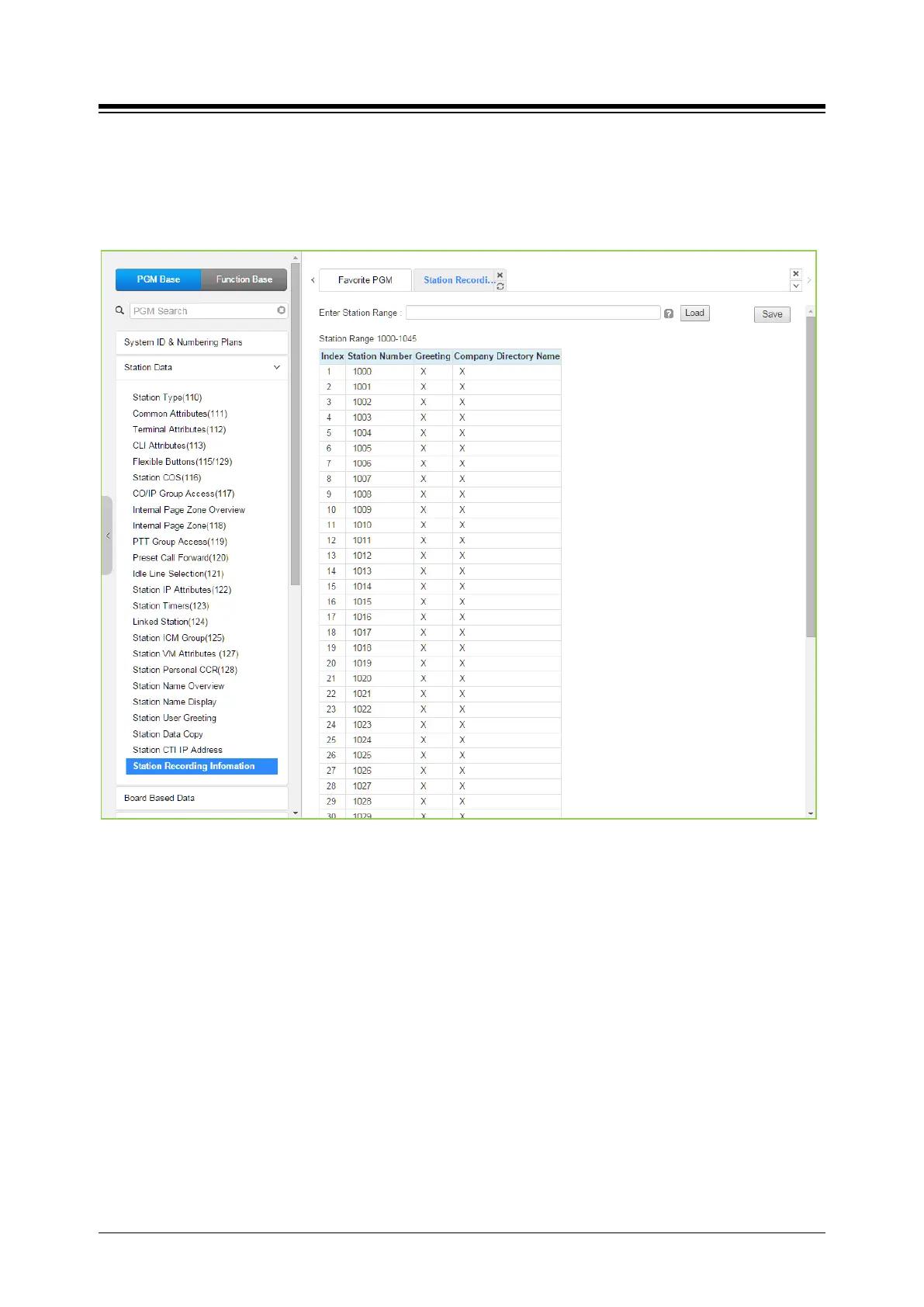 Station Range and click [Load] to display and check the current recording information on each