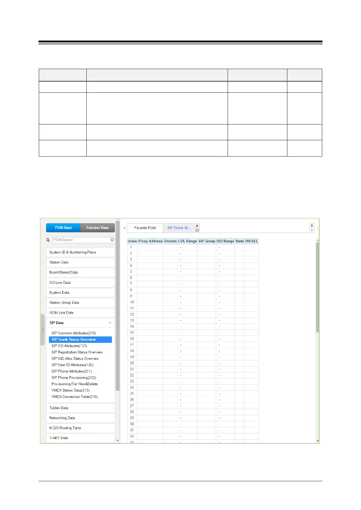 Domain, etc. for the SIP Trunks configured in PGM 133.
