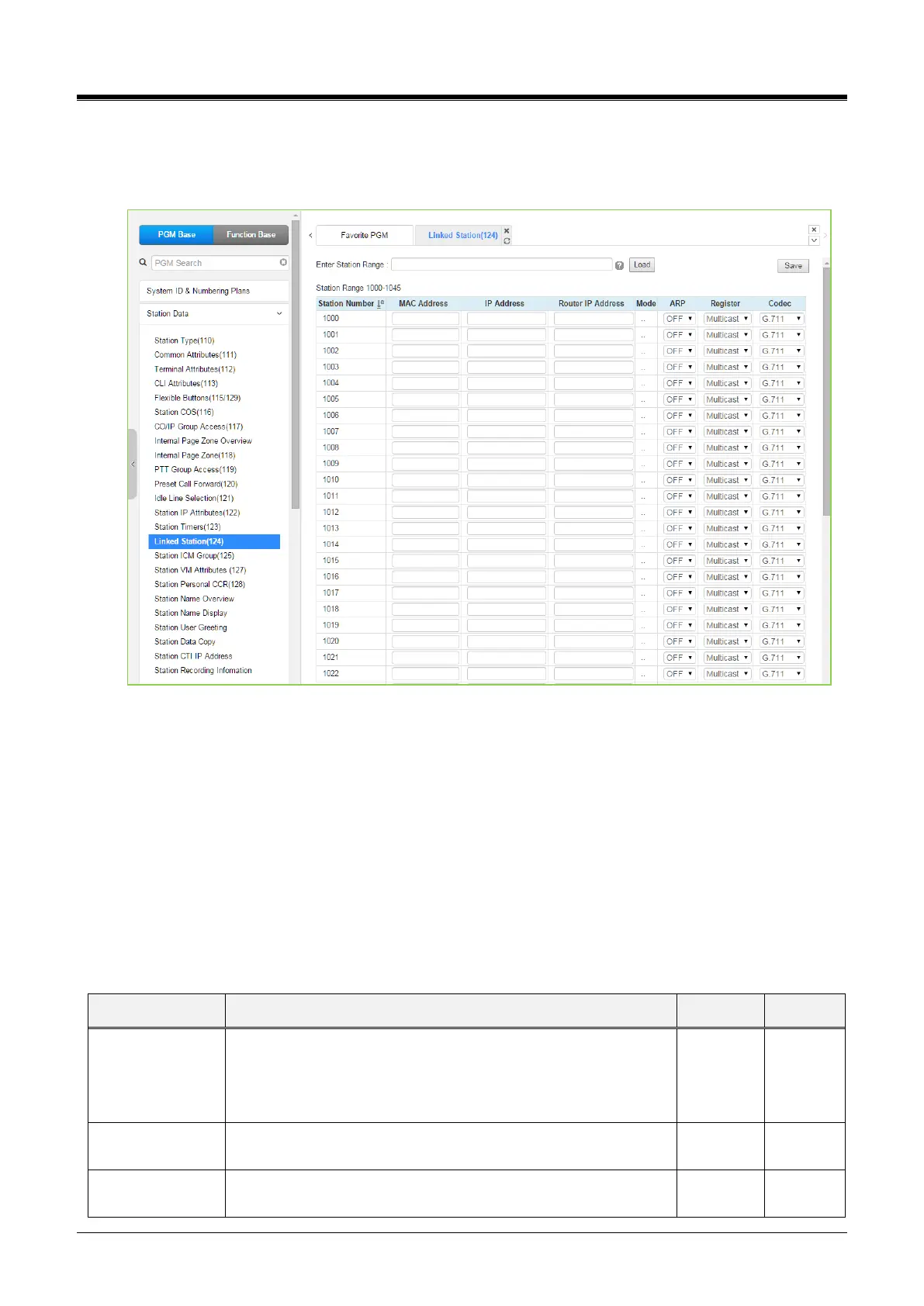 [Load] to enter the Linked Station data. Click the [Save] button after changing Value to apply.