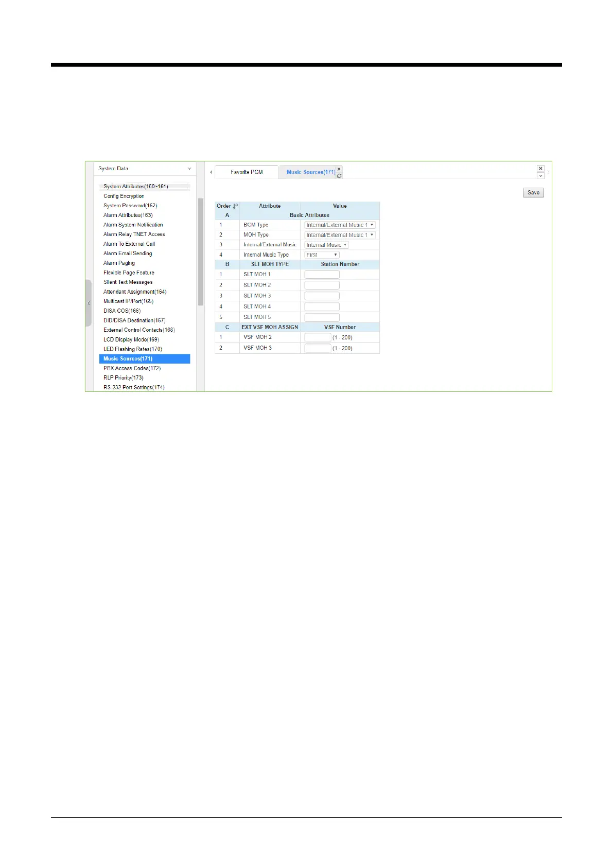 Selecting Music Sources will display the Music Sources data entry page. Click the [Save] button after