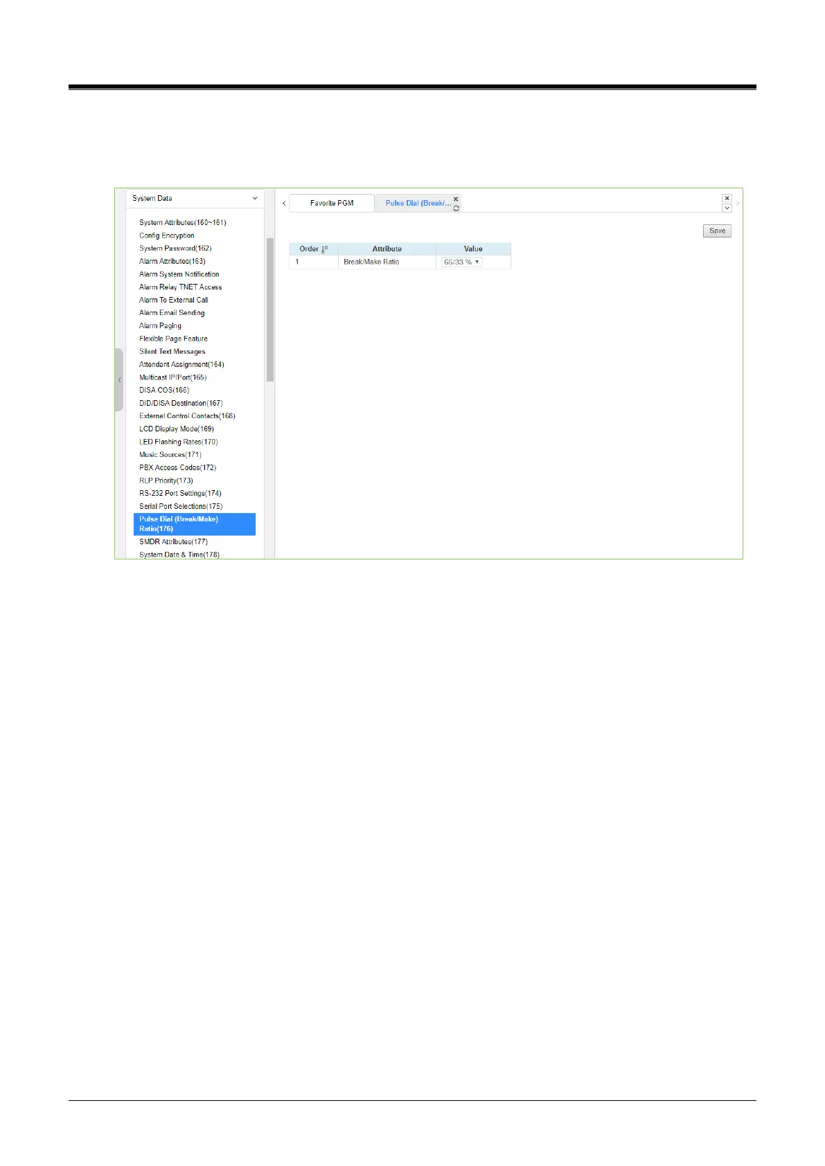4.4.5.24 Pulse Dial (Break/Make) Ratio - PGM 176