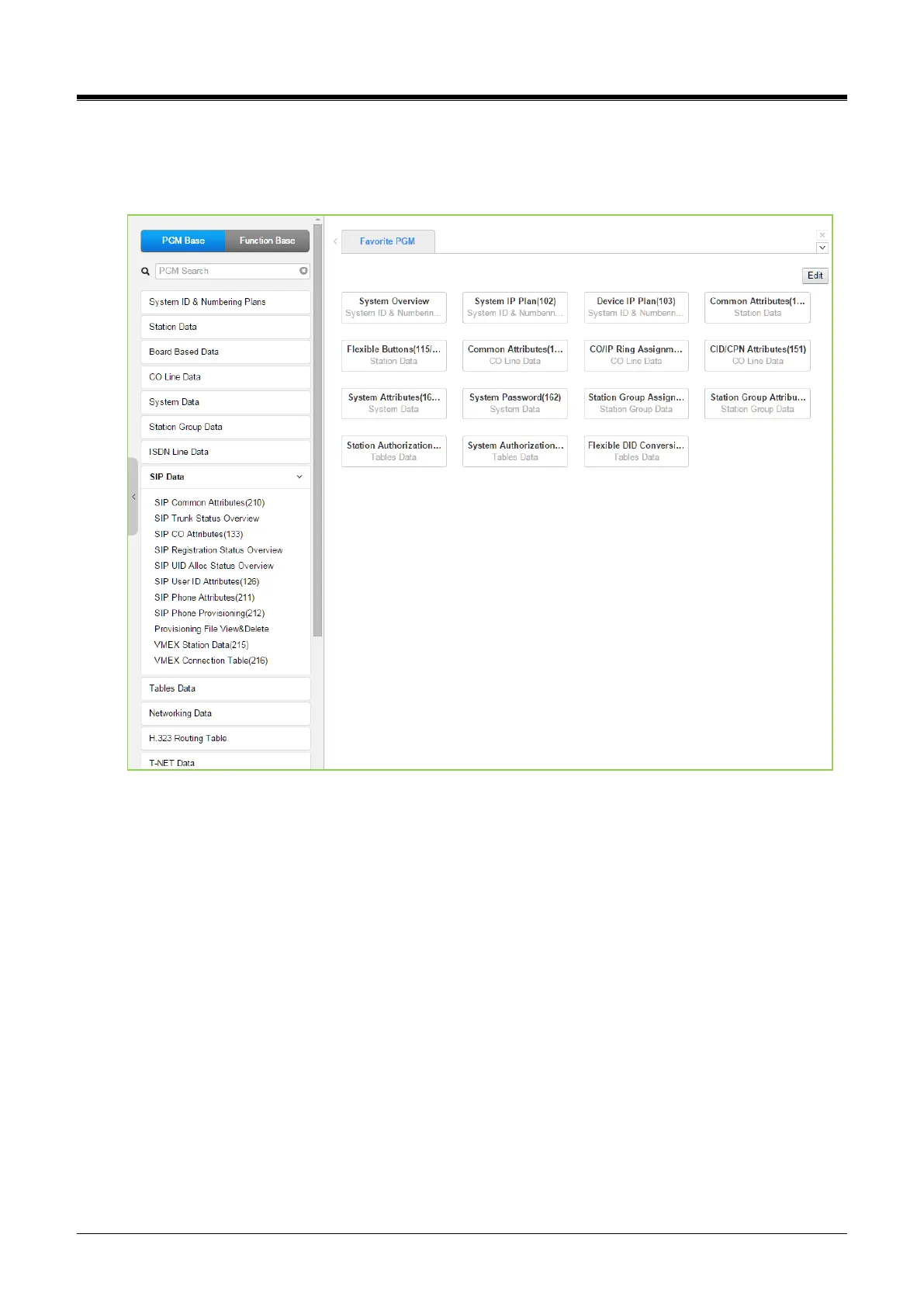 Selecting the SIP Data program group returns the sub-menu displayed in the left frame as shown in the