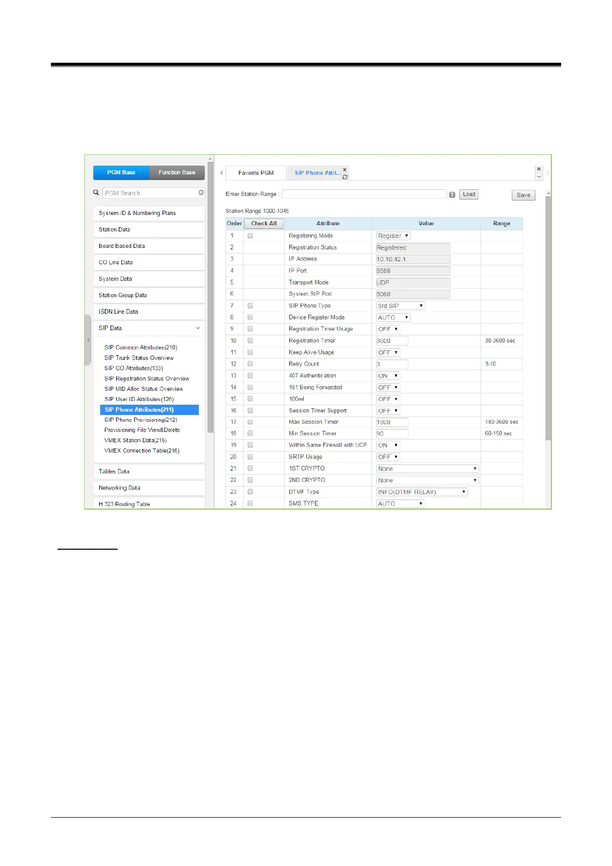 range, and click [Load] to view the SIP Phone Attributes for the first Station Number in the range. Enter new