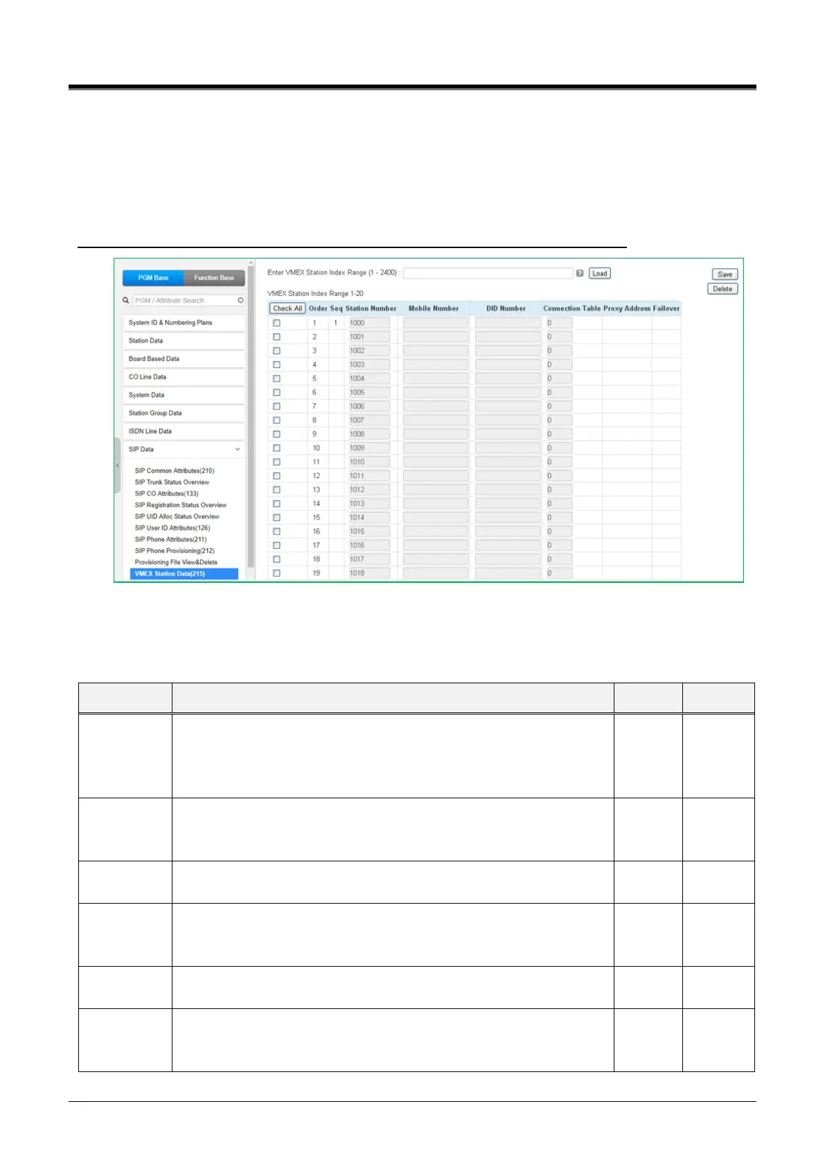 employing SIP. Various parameters, as shown in the following table, must be configured for the Station data