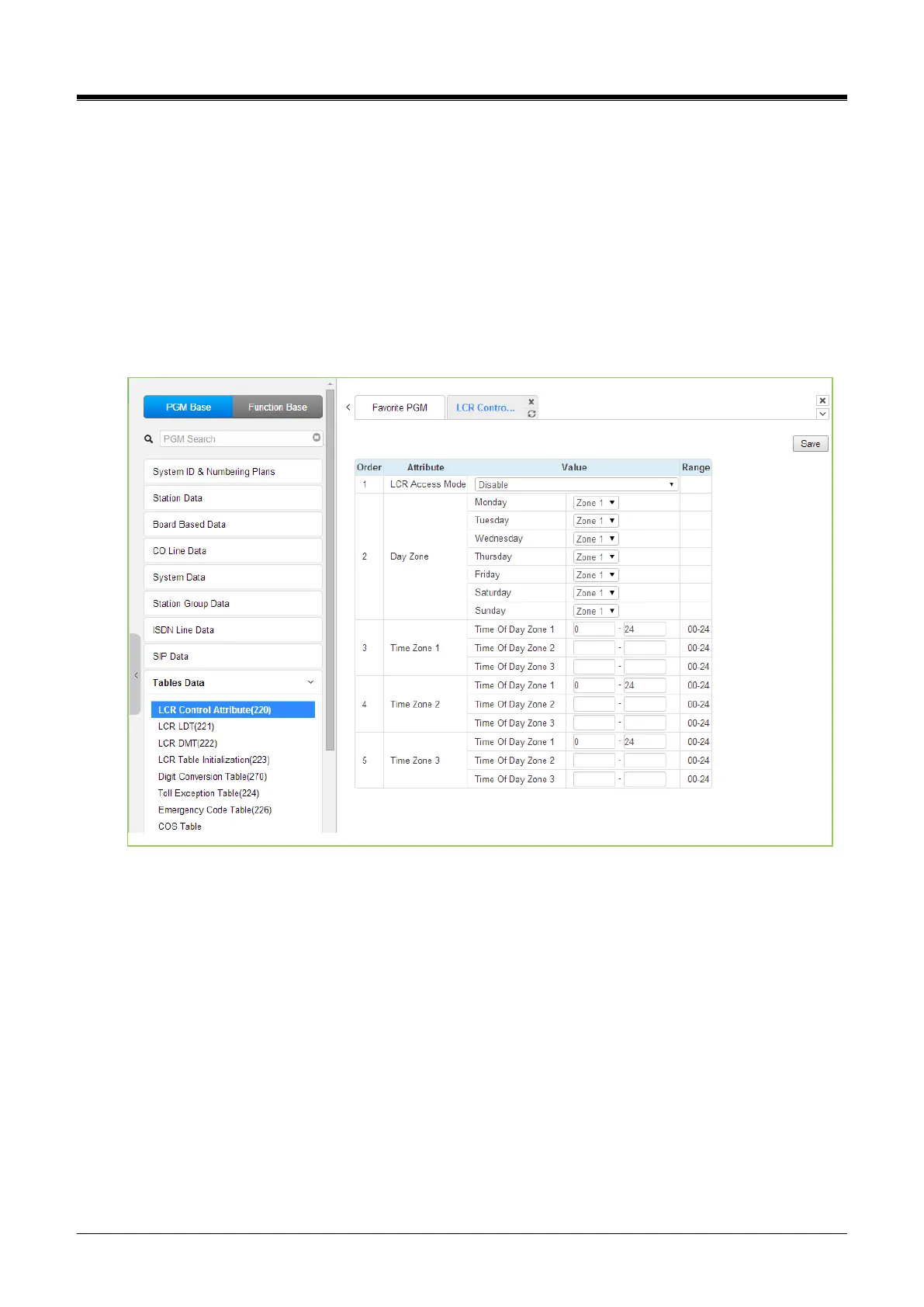 Selecting LCR Control Attributes will display the LCR Control Attributes data entry page. Click the [Save]
