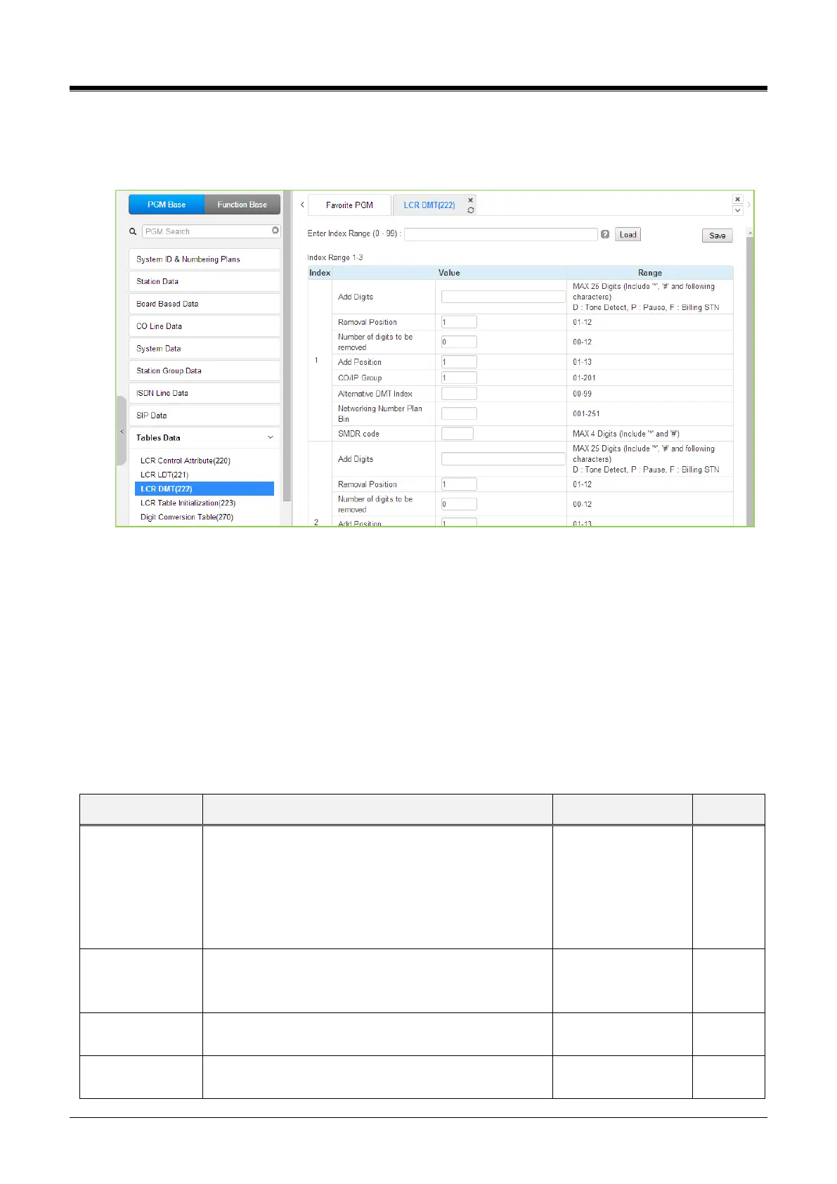 4.4.9.3 LCR DMT (Digit Modification Table) - PGM 222