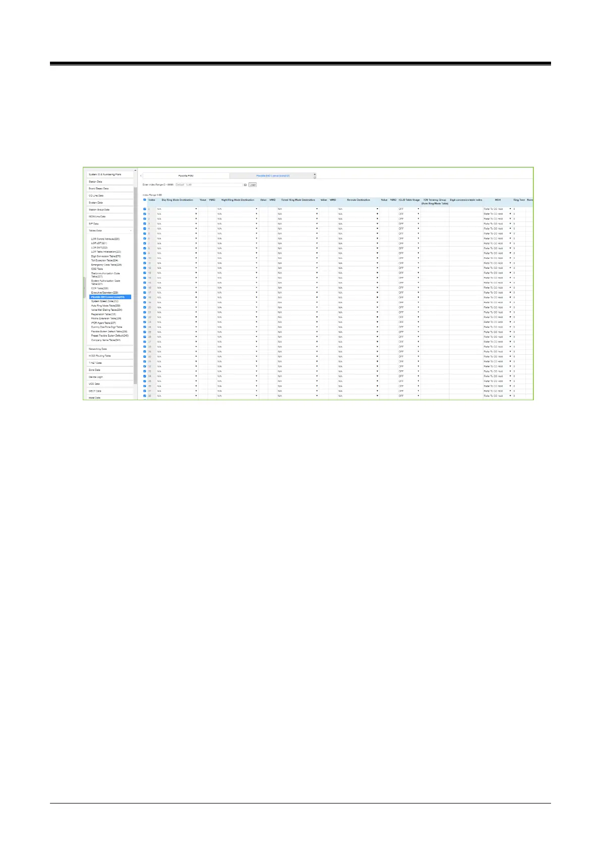 The Flexible DID Table index is used when DID Line is assigned a Conversion type 2. Refer to the DID