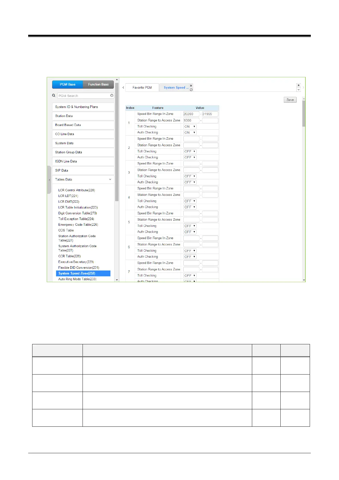dialing. The speed Bin in Zone and Station Range to access zone is different according to selecting Speed