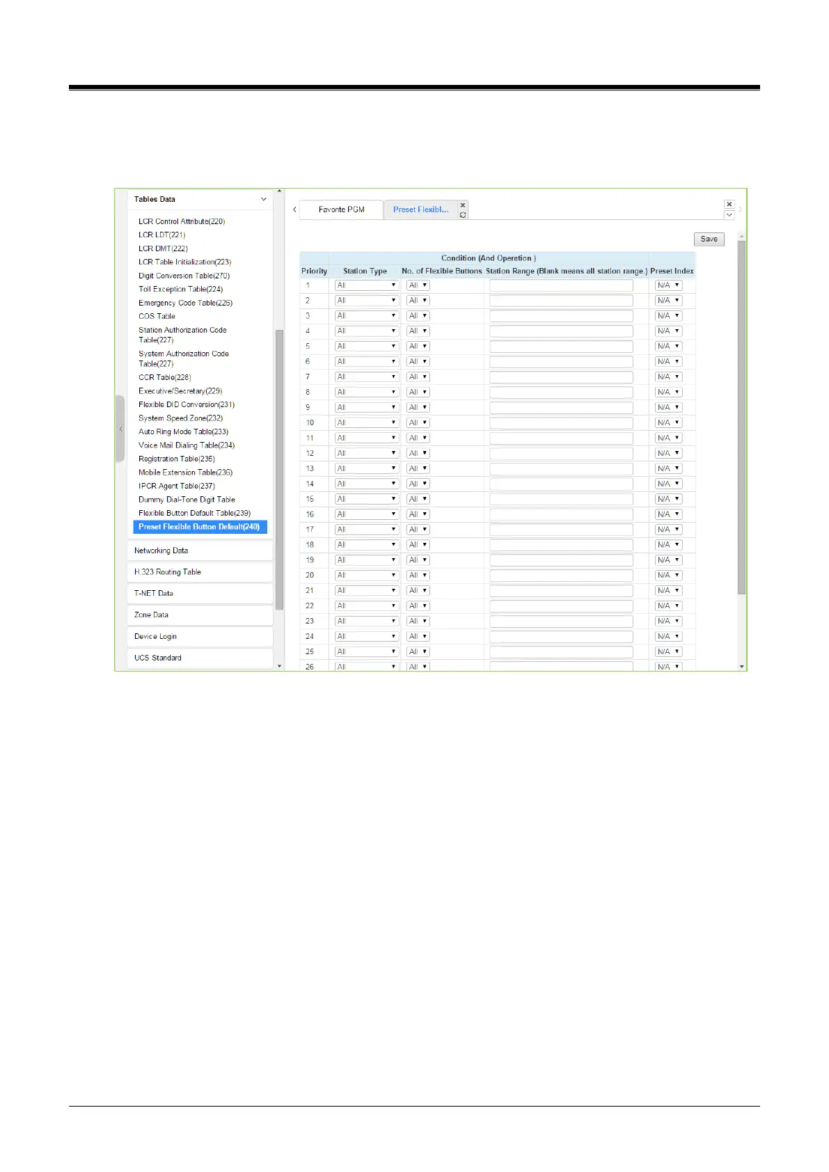 Button, Station Range, and check the preset Index (1~30). The preset index means the range of Flexible