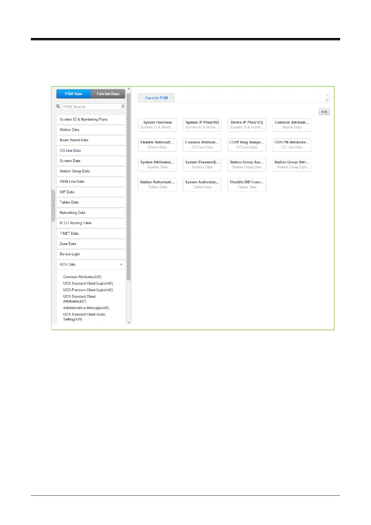 Selecting the UCS Data group returns the sub-menu displayed in the left frame, as shown in the following