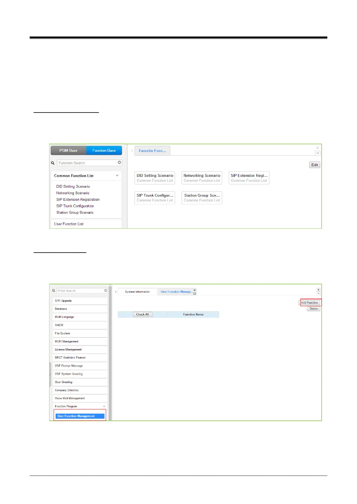 There are two buttons: Common Function List and User Function List. The feature or PGM can register up to