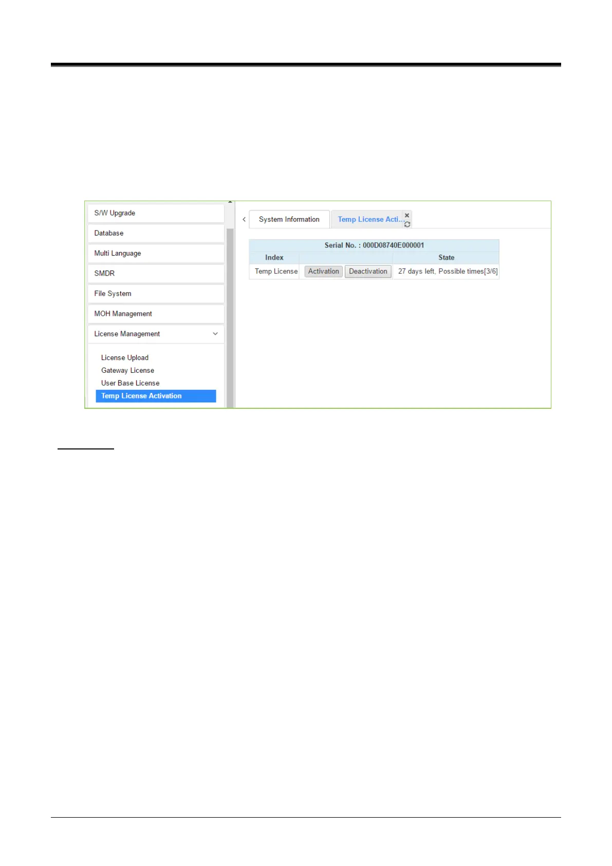 4.5.7.4 Temp License Activation