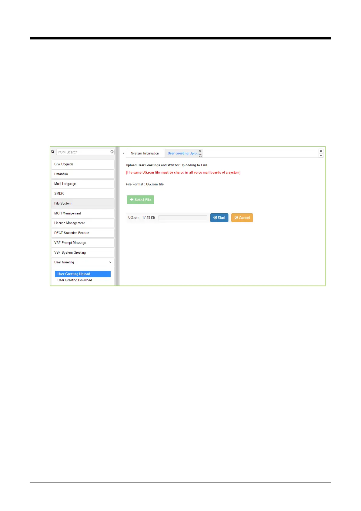 To upload the User Greeting, complete the following steps: