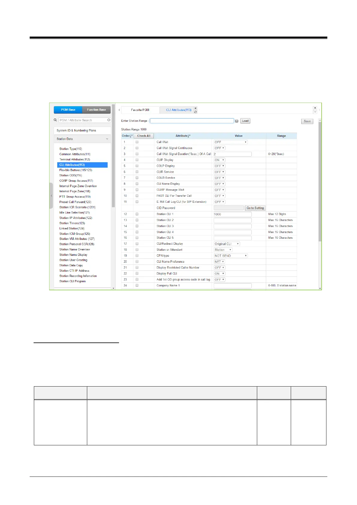 Figure 4.4.2.4-1 CLI Attributes (PGM 113)