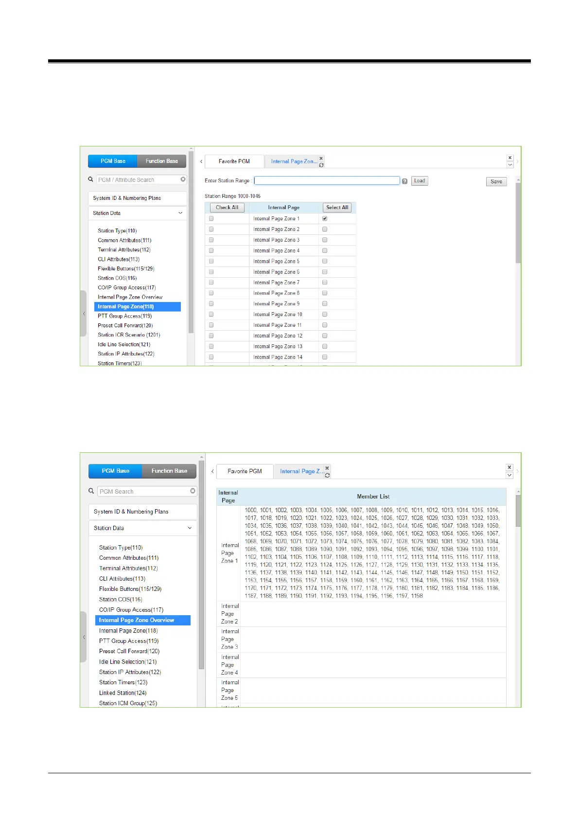 Selecting Internal Page Zone will display the Internal Page Zone data input page. Enter a valid station range