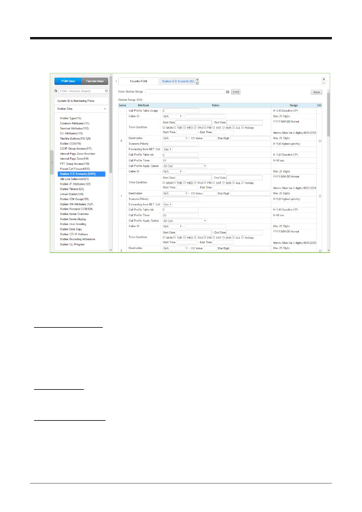 usage. Station user can set the ICR Scenario up to 10 (0 to 9) according to the environment by setting many