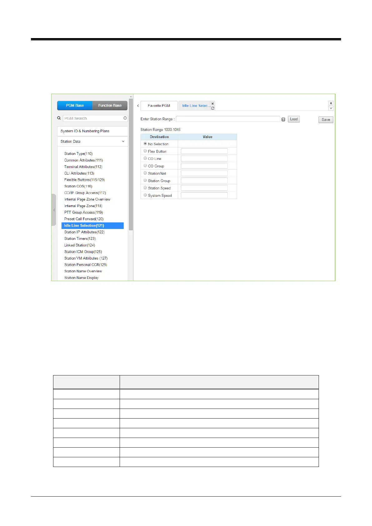 4.4.2.12 Idle Line Selection - PGM 121