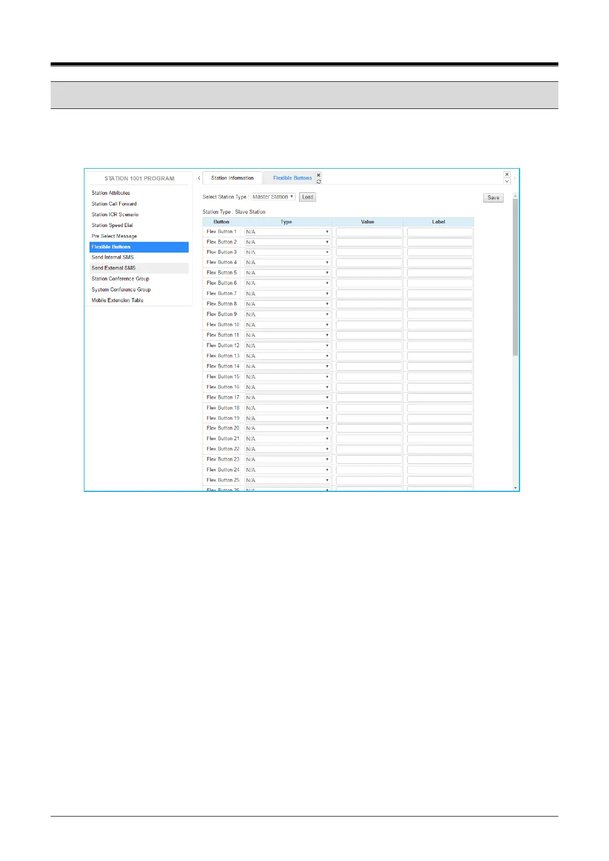 Selecting Flexible Buttons will be displayed the input entry page. Select the Station Type from the drop-down