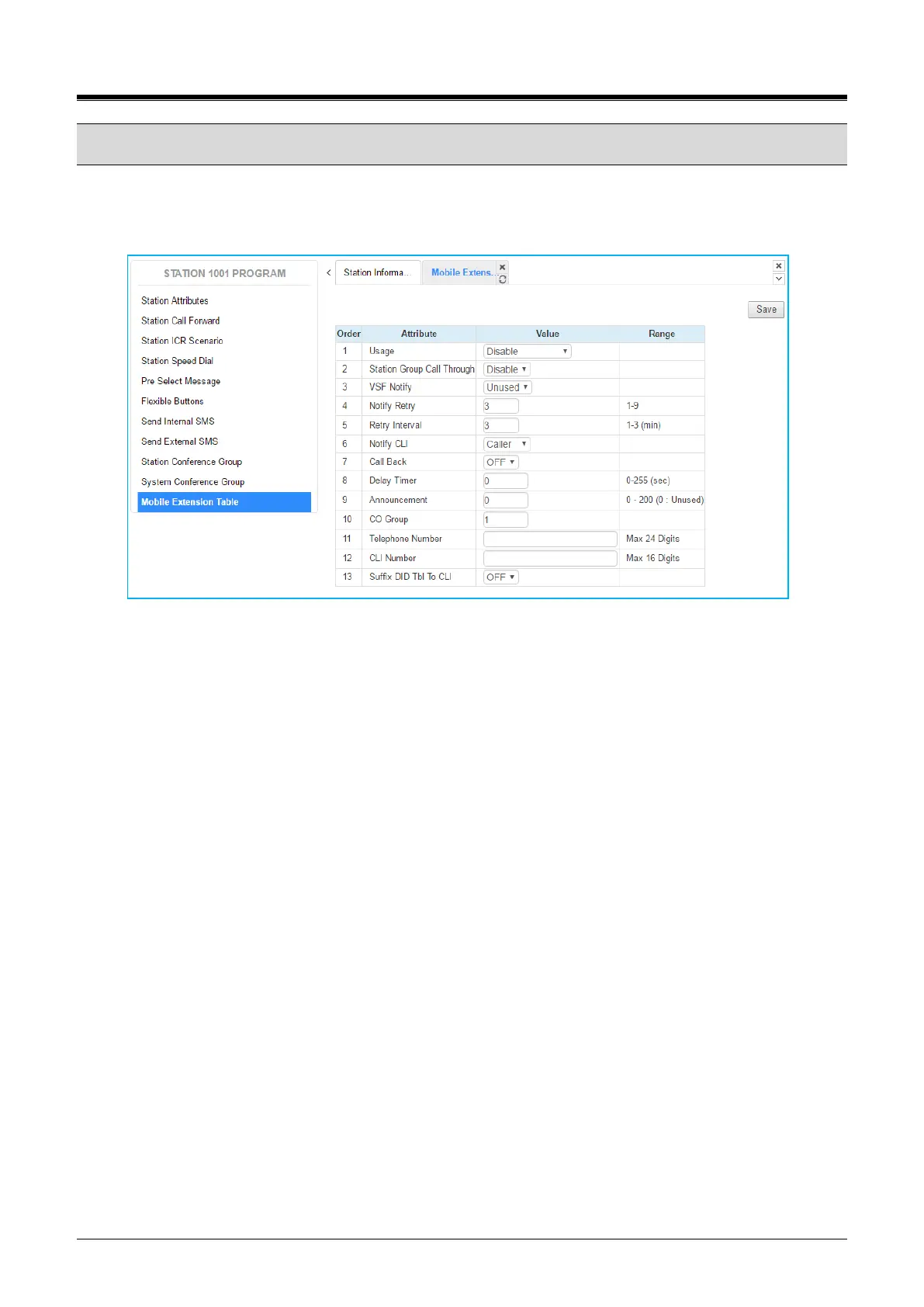 Selecting Mobile Extension will be displayed the attributes entry page. To use Mobile extension, Administrator