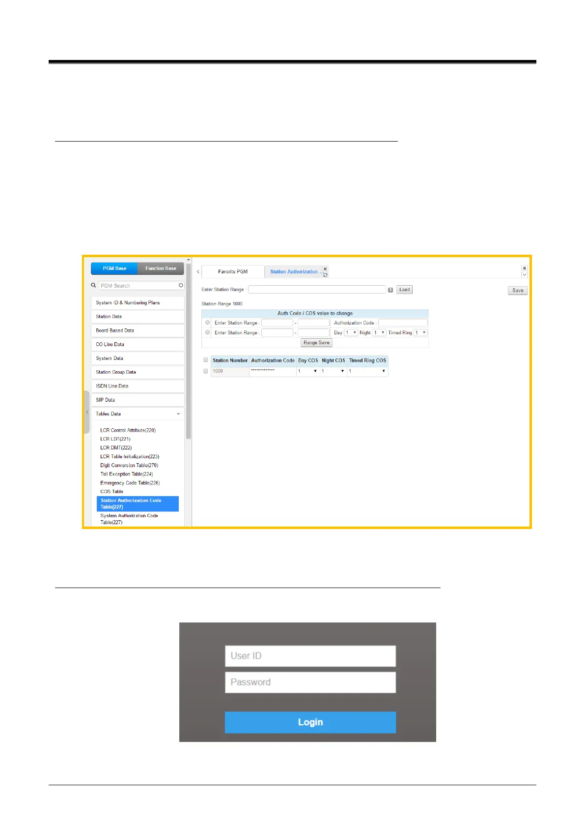 2) Click [Table Data] and [Station Authorization Code Table (227)].