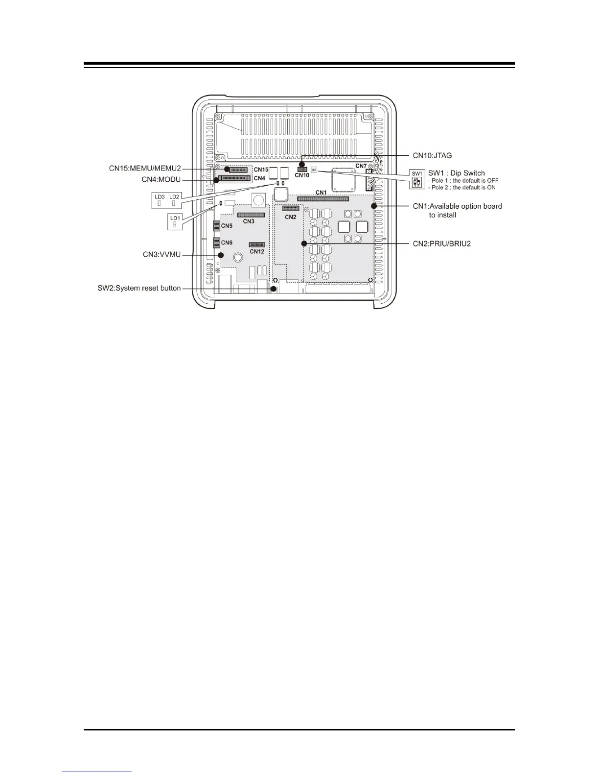 1 Alarm detection circuit, External Page port, and External MOH port