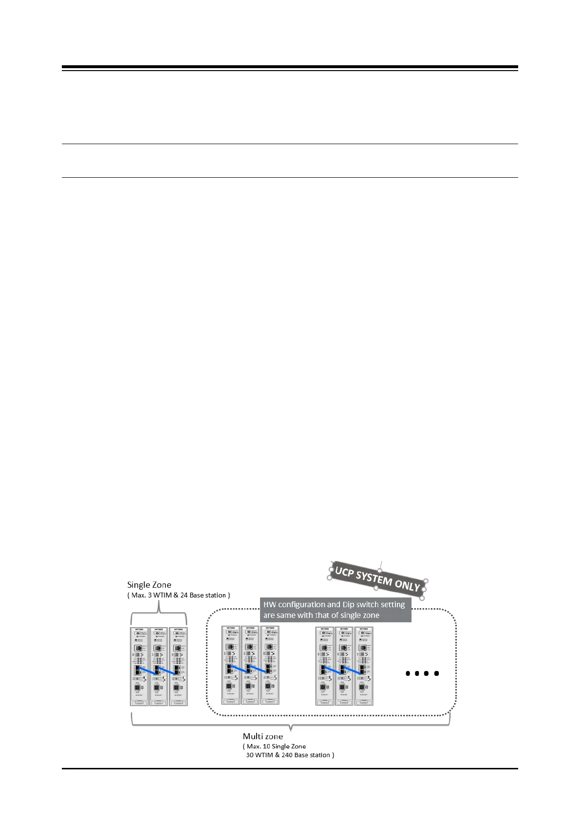 3 WTIM and 24 Base station. The system has up to 10 single zones and 240 Base station.