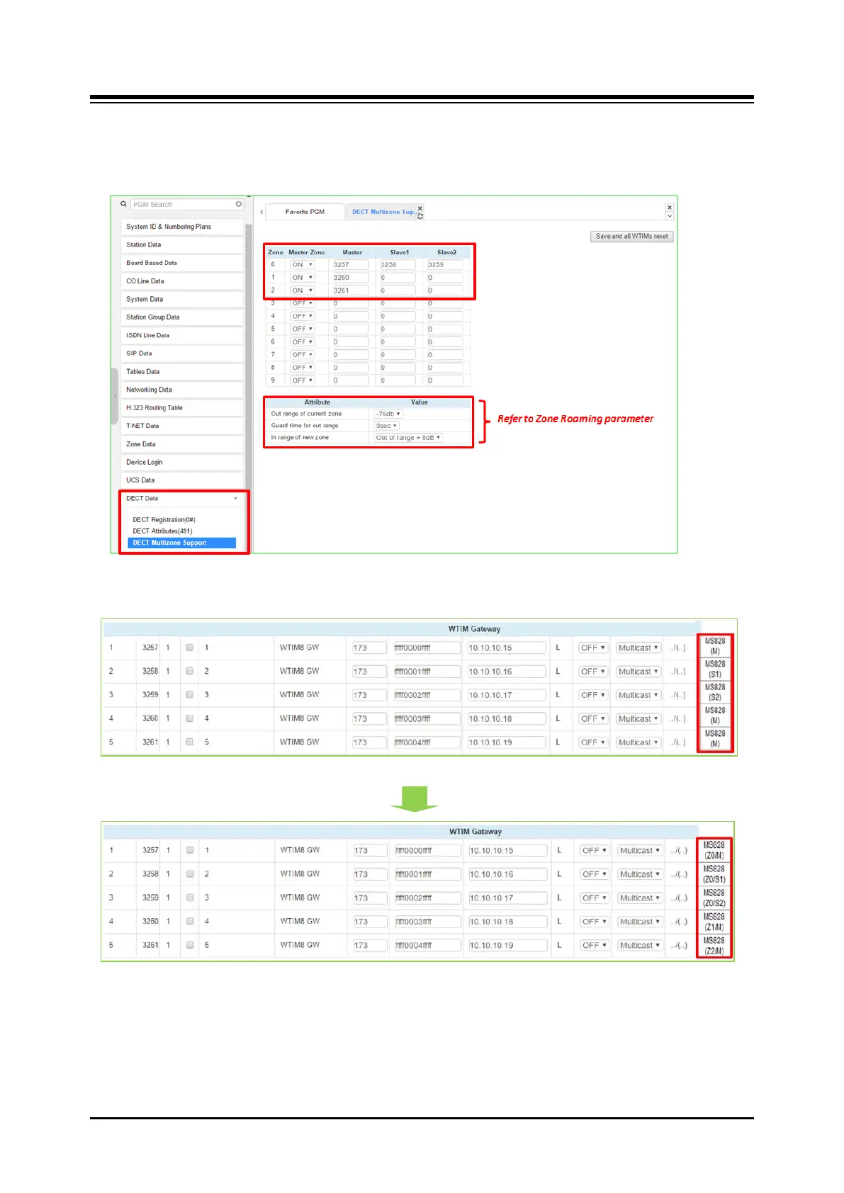 2. To fill out the sequence number each field as below in DECT Multizone support.