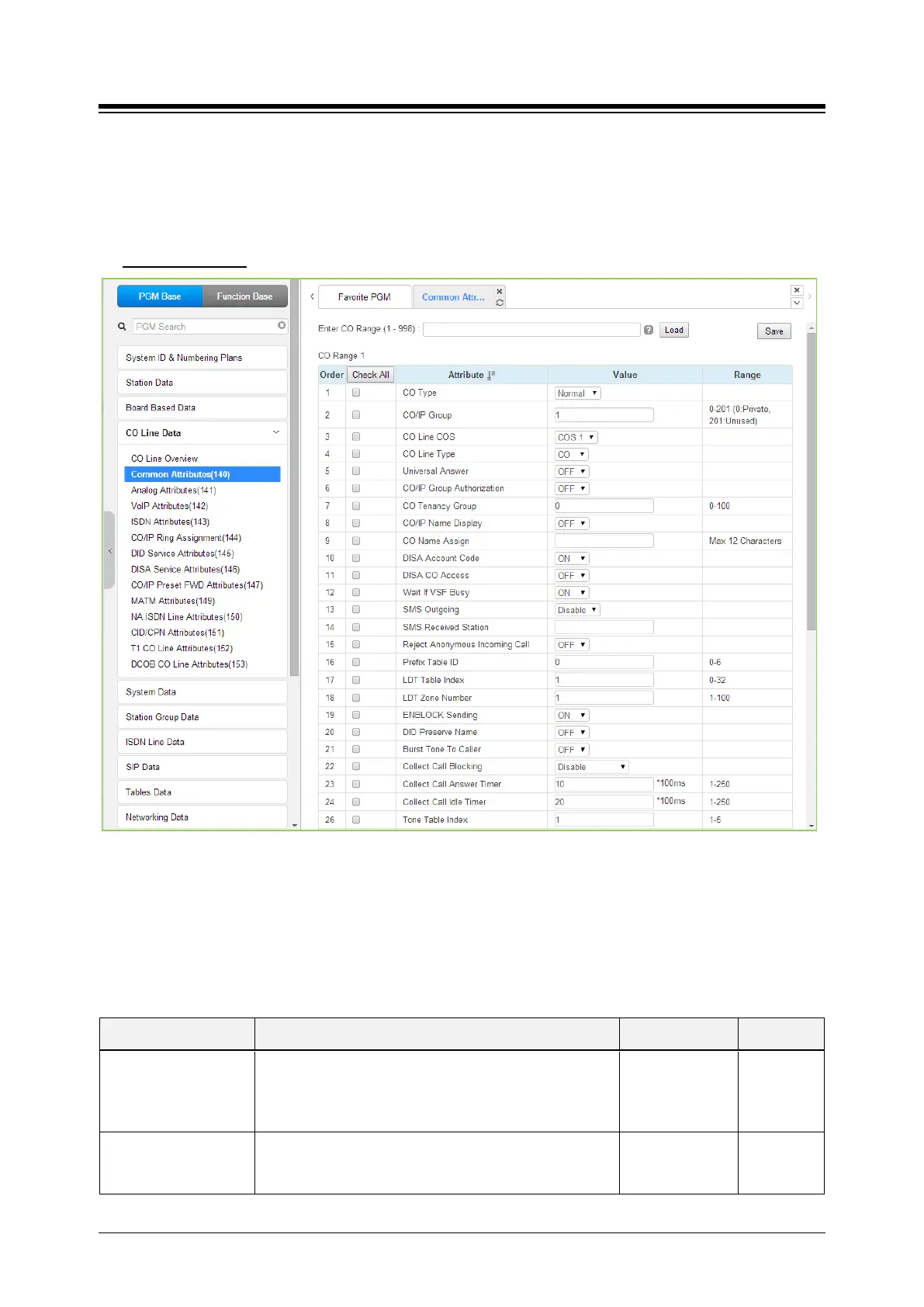 Common Attributes define various characteristics of CO lines facilities under control of the system.